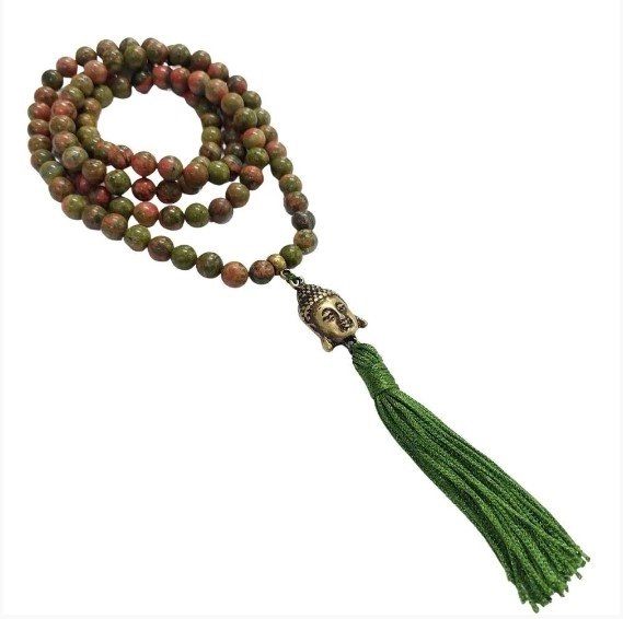 Japamala Pedra Unakita Buda Ponta108 conta Um dos mais antigos objetos de devoção espiritual conhecido é utilizado há milhares de anos por Hindús e Budistas no auxílio à meditação.