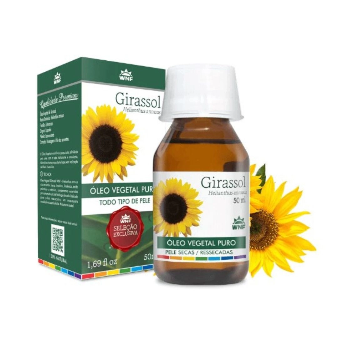 Óleo Vegetal Girassol - Helianthus annus seed oil. Atua na umectação e reconstrução do manto lipídico, hidrata e protege a pele. Muito usado em massagens corporais modeladoras. Extraído pela prensagem das sementes de Helianthus annuus, originária da América do Sul, hoje é cultivado em diversos países do mundo. É um excelente óleo para todos os tipos de massagens, por ser denso e de fácil deslizamento na pele. É bastante econômico e possui ótimo custo-benefício sendo indicado para o corpo todo. Excelente para massagens modeladoras ou apenas para relaxamento muscular. É o óleo que possui a composição de ácidos graxos mais equilibrada da linha WNF. Pode ser usado como hidratante corporal pós-banho.