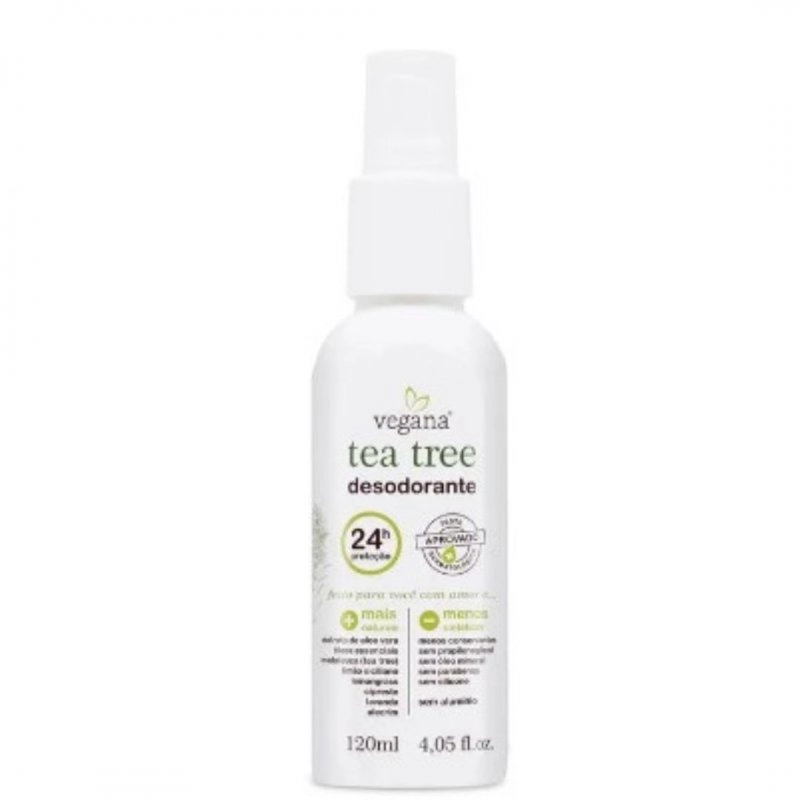 Desodorante Tea Tree é 100% natural, com ativo inibidor a decomposição enzimática dos componentes do suor. Desenvolvido com óleos essenciais de Melaleuca, Lemongrass, Cipreste, Alecrim, Limão Siciliano e Lavanda que atuam em sinergia com o ativo desodorante (Triethyl citrate). Seus ingredientes são harmonizados de forma a produzir um aroma natural fresco e com notas cítricas. O Desodorante Tea Tree possui uma embalagem produzida a partir da cana-de-açúcar e com a menor quantidade de material possível. O tipo de válvula utilizada é de material mais sustentável, com maior facilidade de reciclagem, ao contrário de outras como spray, aerossol ou roll-on.